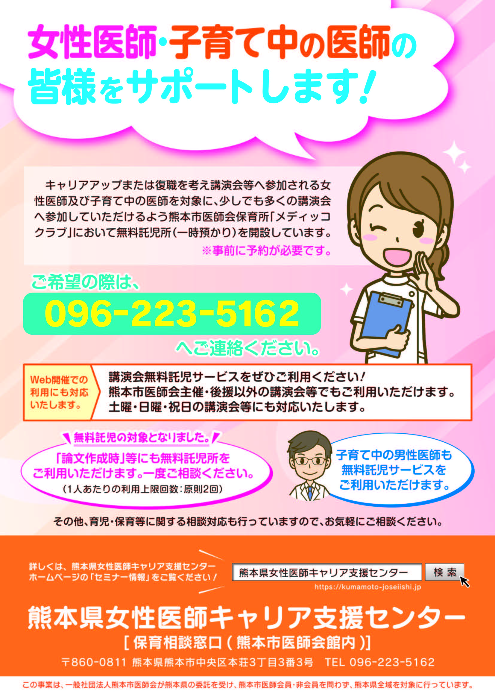 熊本市医師会では子育て中の女性医師の皆さんを支援するために、